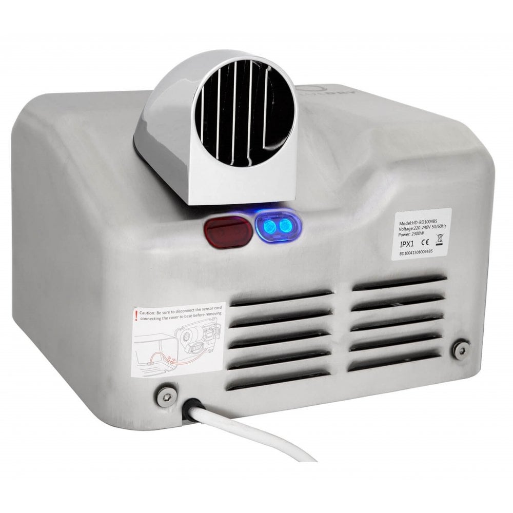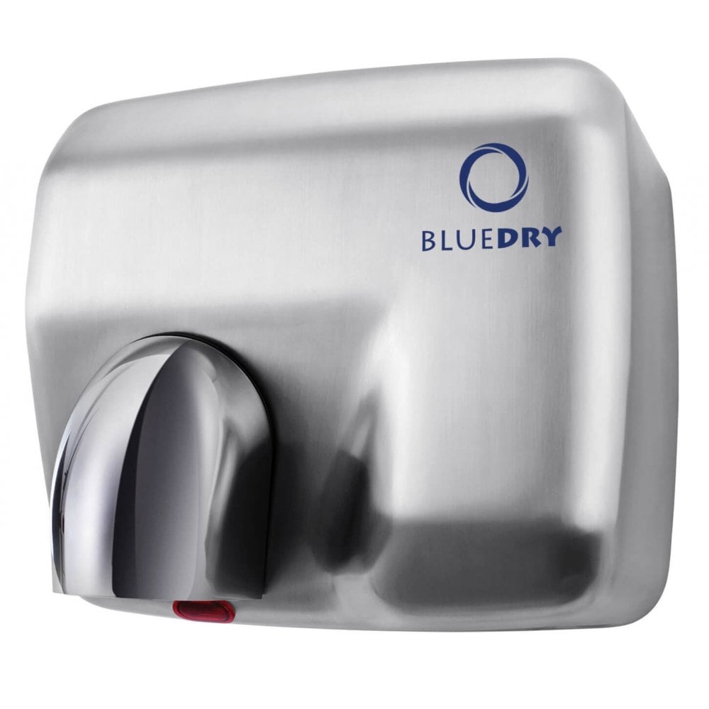 The BlueDry Blue Storm automatic hand dryer is traditional looking, and allows a 360-degree rotating nozzle to dry not only the hands, but also the face when needed. It is manufactured from a solid 304 graded stainless steel making it resilient and resistant to vandalism. Quieter than most other dryers, thanks to the base being designed to reduce vibrations. Similar to the other BlueDry units, the Blue Storm comes with a blue LED light to guide users drying their hands.