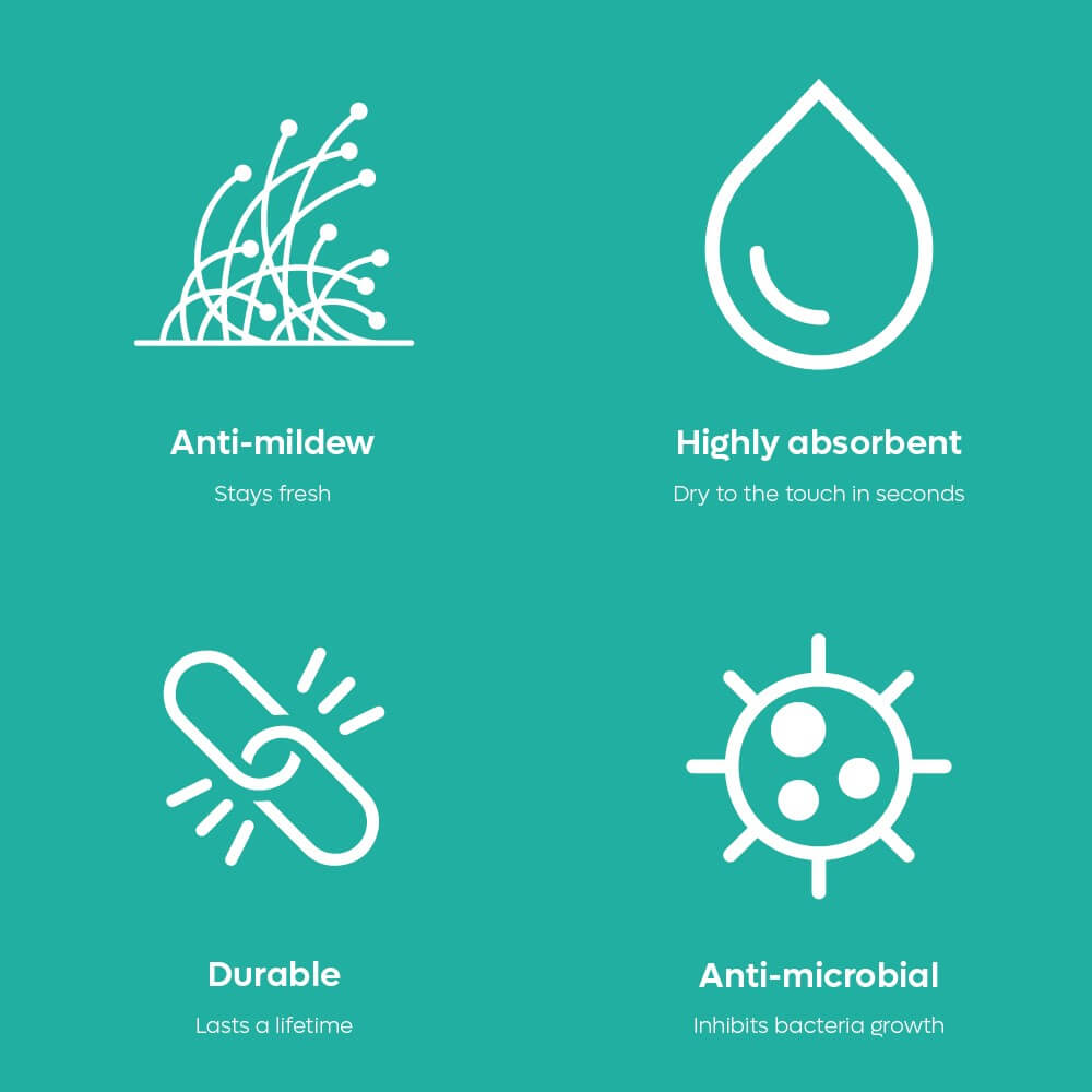 Hygienic: Anti-microbial and anti-mildew — prevents bacteria and mould growth. Easy to clean