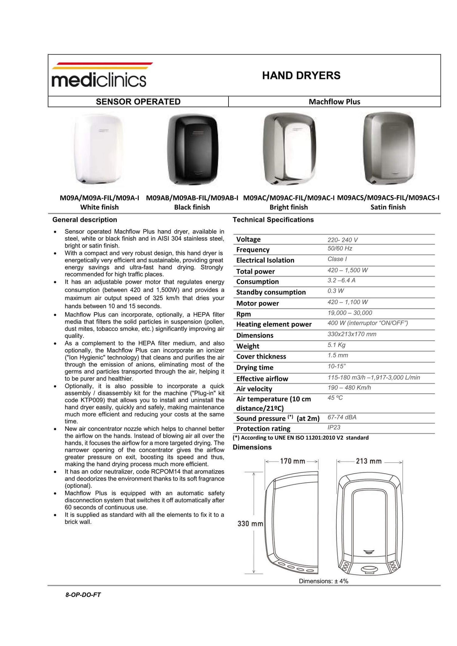 A 'best in class' product with a mid-price range yet gives the same, if not better, level of performance, durability and reliability than the most expensive dryers such as the Xlerator and Dyson. Bought for its genuine 10 second dry times and robust construction which make this one of the leading dryers today. Mediclinics have been manufacturing hand dryers in Barcelona for over 35 years and are renowned for quality and a brand you can trust.