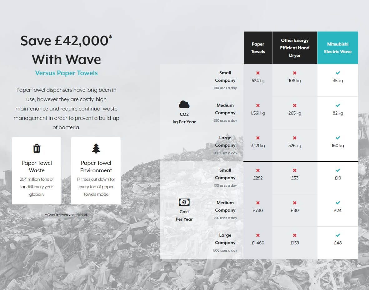 2272 dries possible per £1 spent on electricity^ compared to 143 dries per £1 spent on paper towels^^