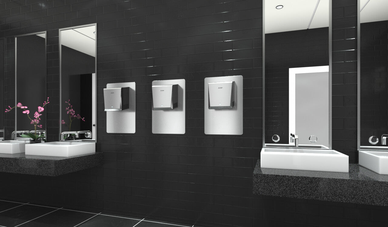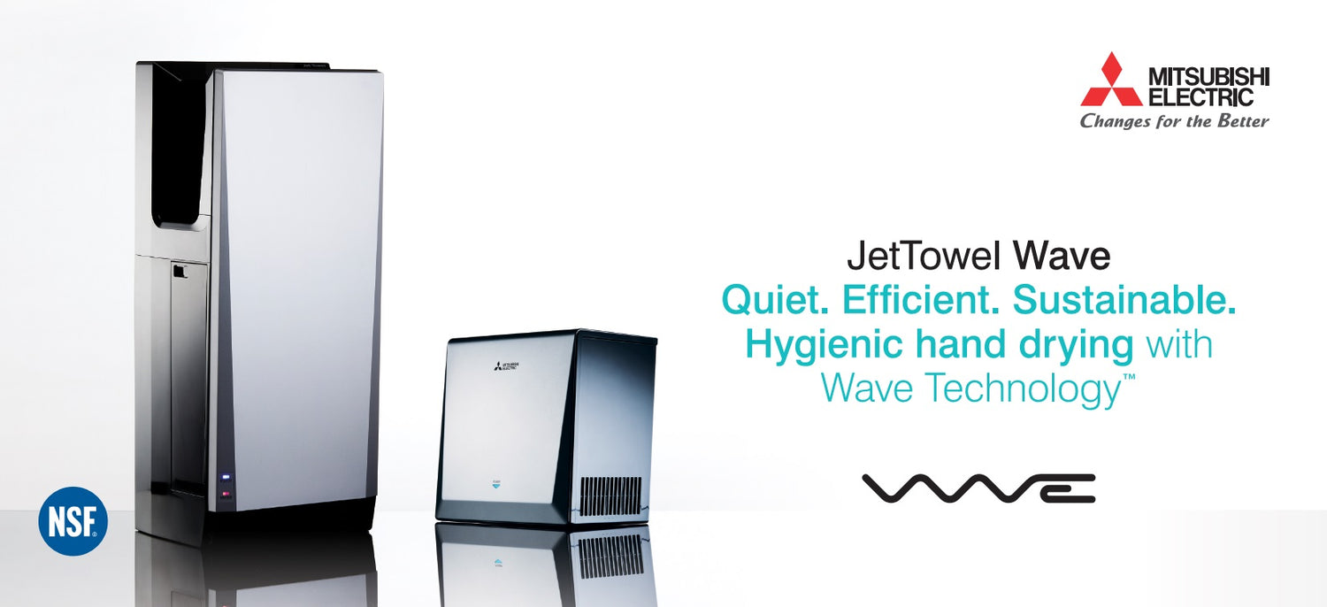 Patented Mitsubishi Wave Nozzle Technology™ aerodynamic air chambers for reduced noise and improved drying - One of the quietest, high performing hand dryers available making them suitable for a range of noise sensitive locations