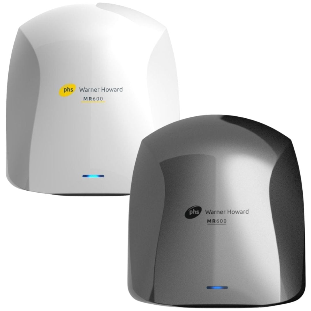 PHS Warner Howards MR600 Model is a low energy hand dryer. A compact and reliable hand dryer with a quick dry time, It has a 3 years guarantee, IP24 protection and anti-microbial coating.