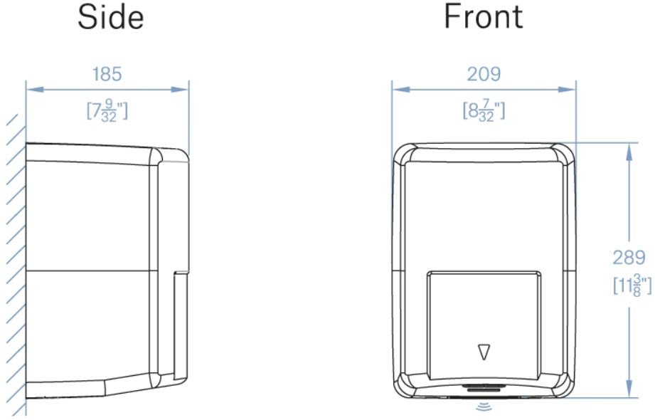 The Splash Labs Air Fury automatic hand dryer is available in a white, brushed satin, polished chrome finish. Its cover is manufactured from 304 stainless steel, providing a huge amount of strength and durability to the dryer. With a rated power of 1.6kW, (which includes a 0.9kW heating element), TSL.89 uses approximately 70% less energy than conventional hand dryers, however, sacrifices little in performance, managing an impressive 10 to 12 second dry time, which rivals market leading dryers, while also providing the user with warm air for comfort.