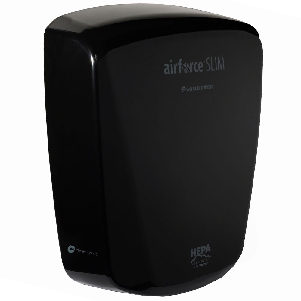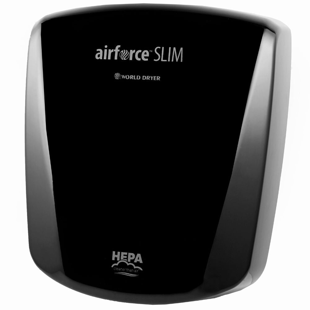 Available in four stunning finishes—black and white with aluminum covers, polished stainless steel, and brushed stainless steel—the AIRFORCE SLIM complements any washroom decor. All finishes feature an antimicrobial coating, promoting a healthier environment.